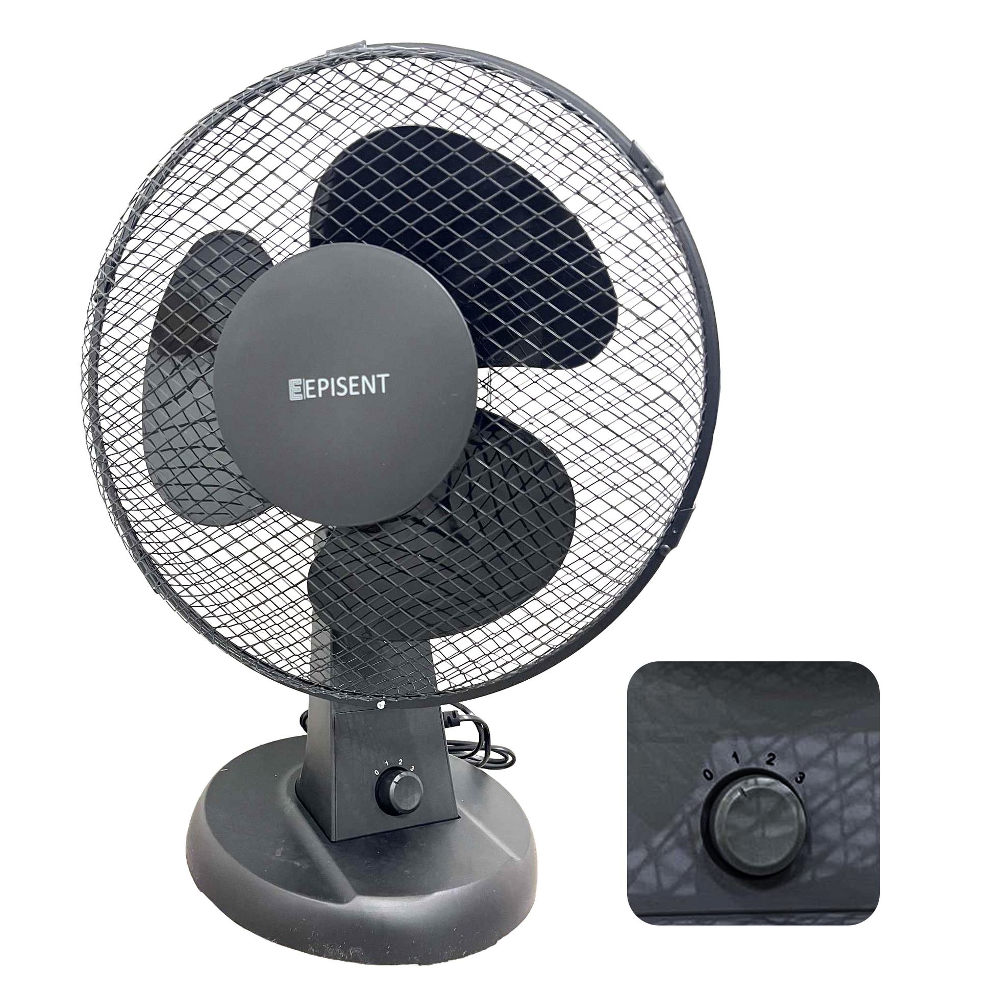 EPISENT 12 inch Desk Fan | Matt Black | Quiet & Powerful Cooling | Rotary Knob Speed Control | Low Noise | Strong Base | Portable Fan for Home & Office