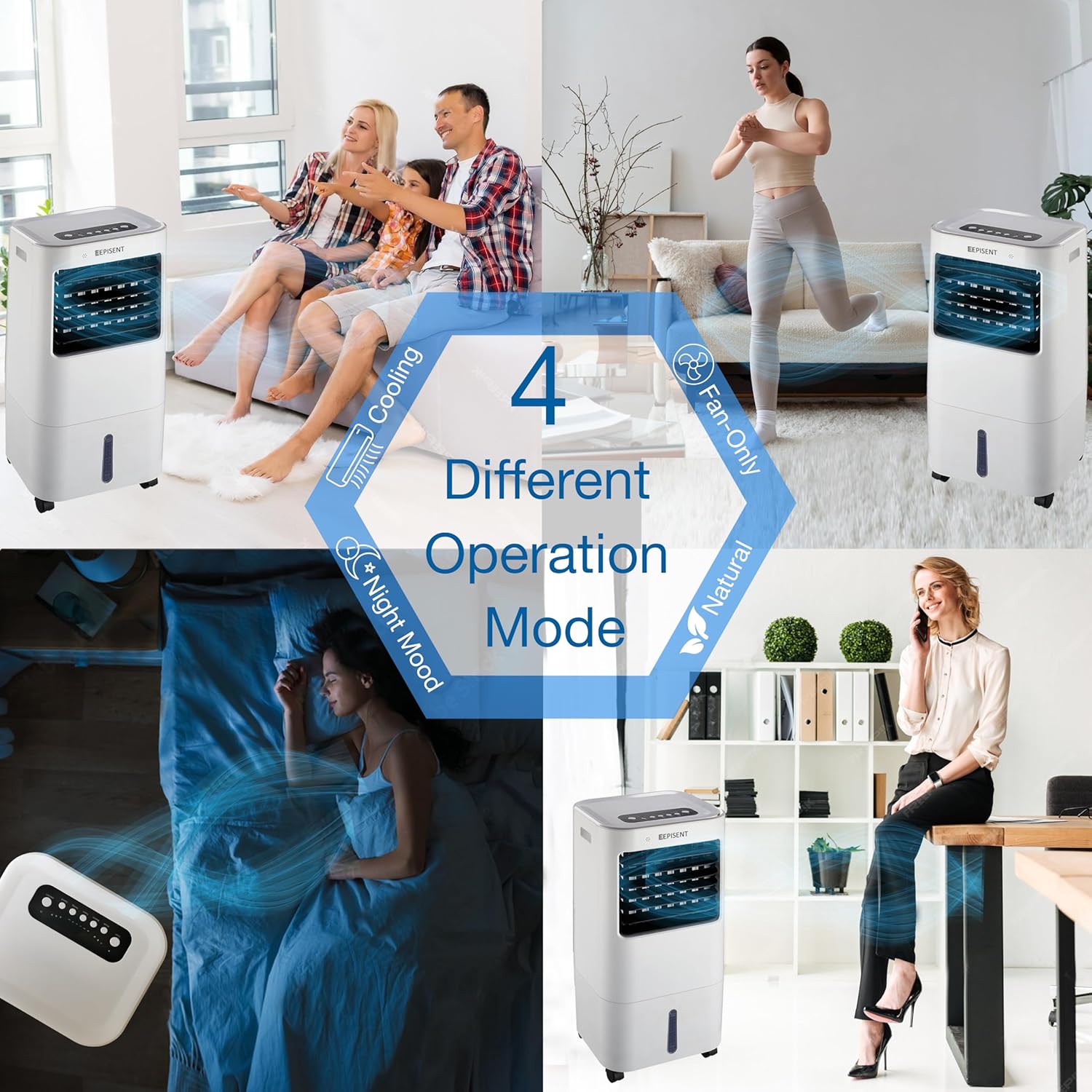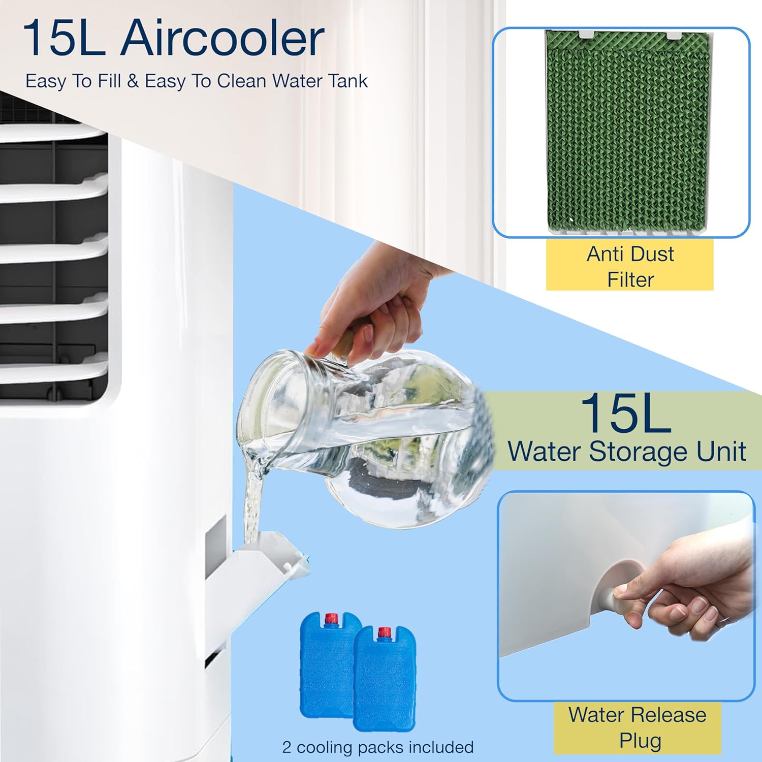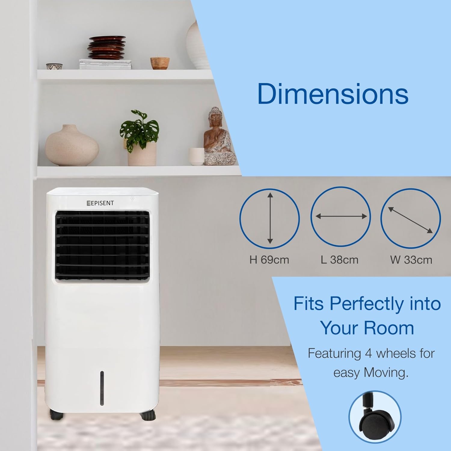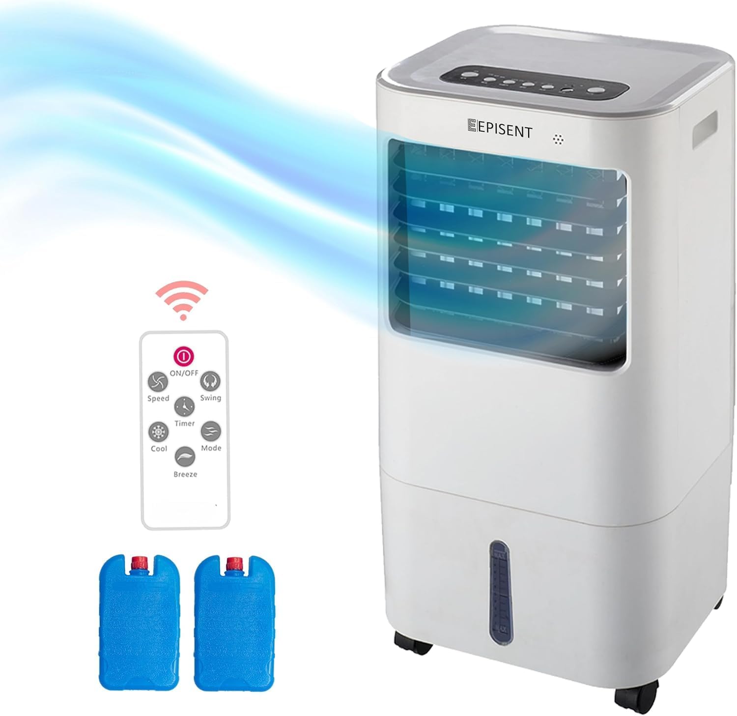 Air Cooler – 15L Evaporative Cooling Fan with Ice Packs & Remote | Quiet Air Conditioner | 3-Speed, LED Display, Timer, Humidifier & Air Purifier | Portable Fan for Bedroom, Office, Home Use – EPISENT
