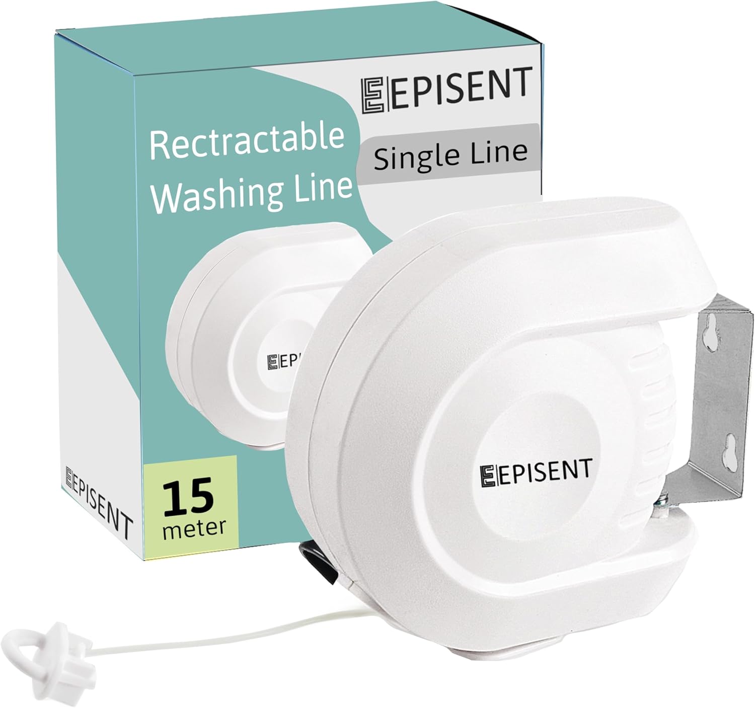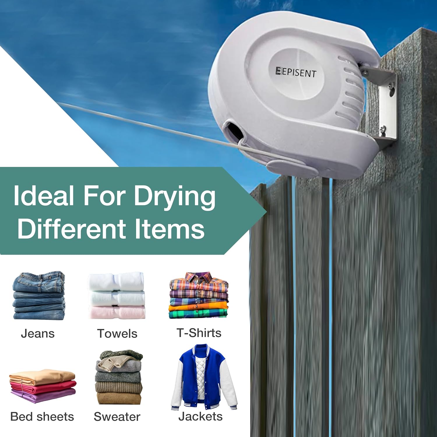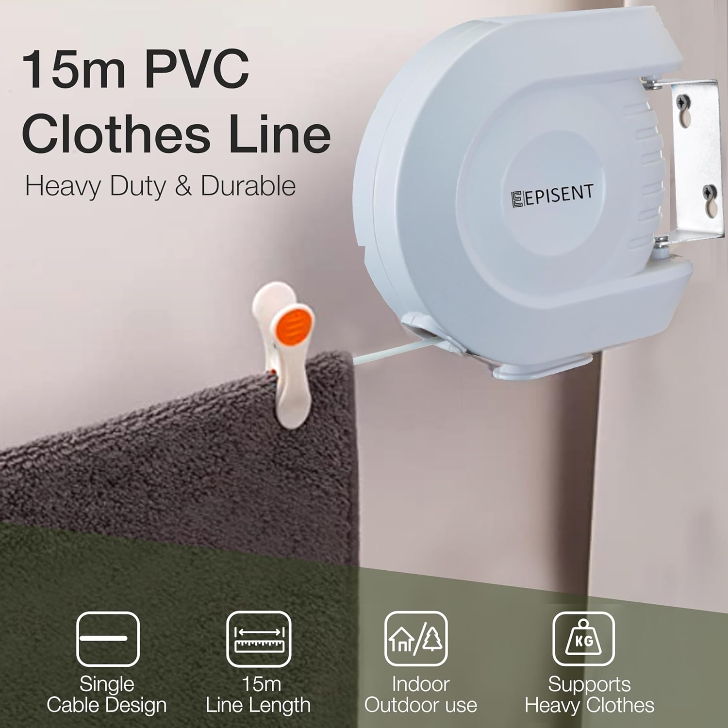 Episent 15M Washing Line | Wall Mounted Retractable Clothes Line for Outdoor Use | Heavy Duty Extendable Clothes Line