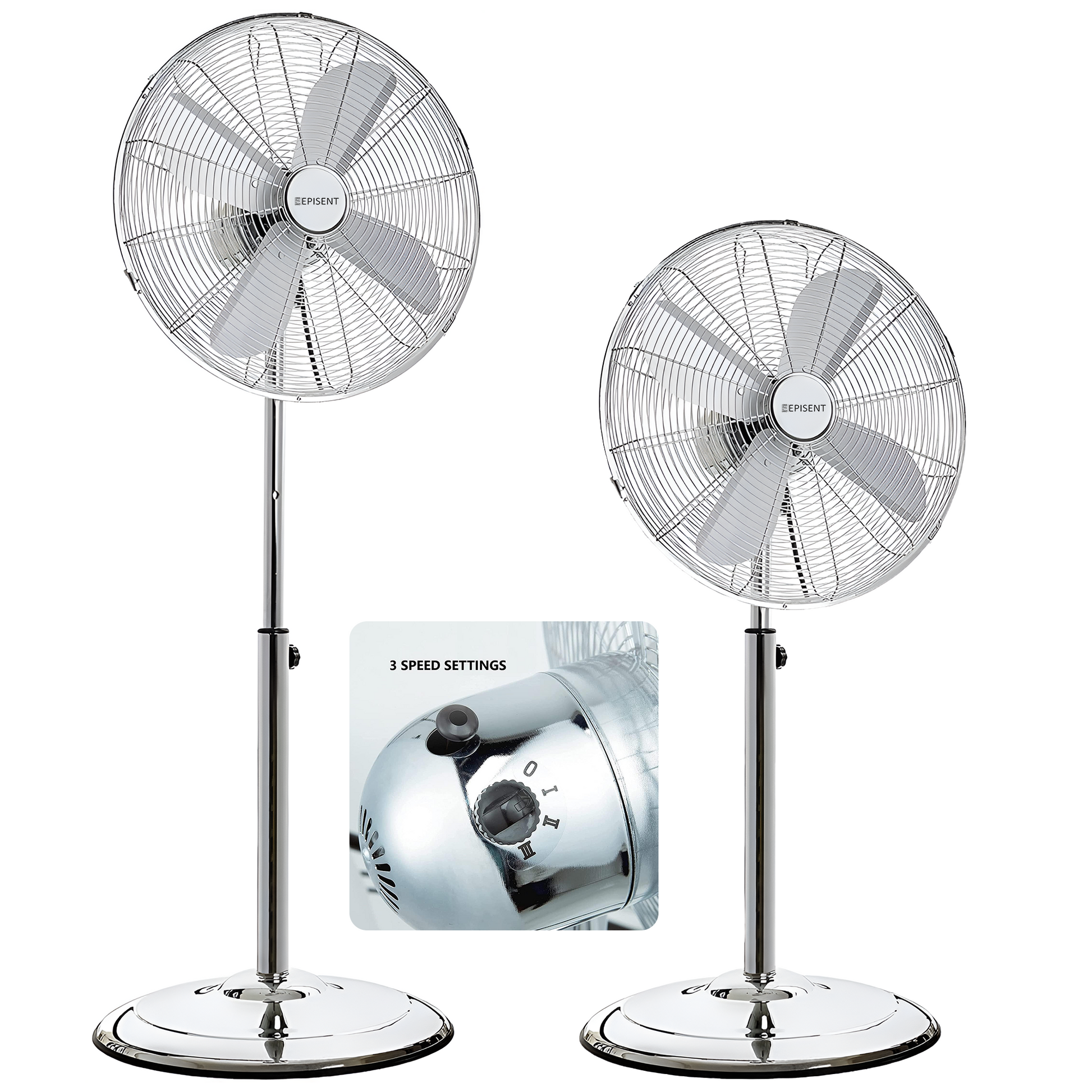EPISENT 16" Chrome Pedestal Fan – 3-Speed Rotary Control, Adjustable Height Up to 140cm, Manual Tilt, Anti-Tip Base – Powerful Quiet Metal Oscillating Floor Standing Fan with Strong Airflow – UK Plug