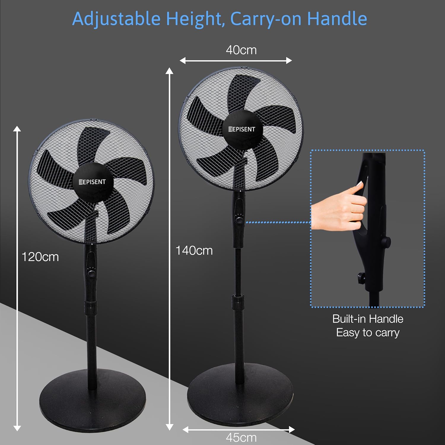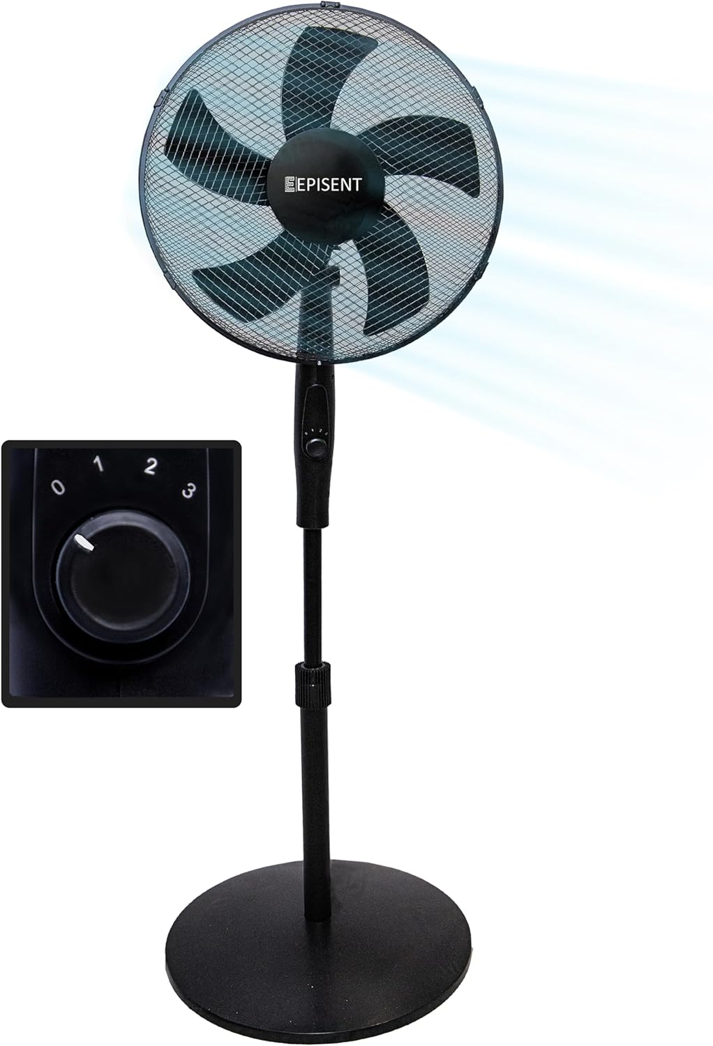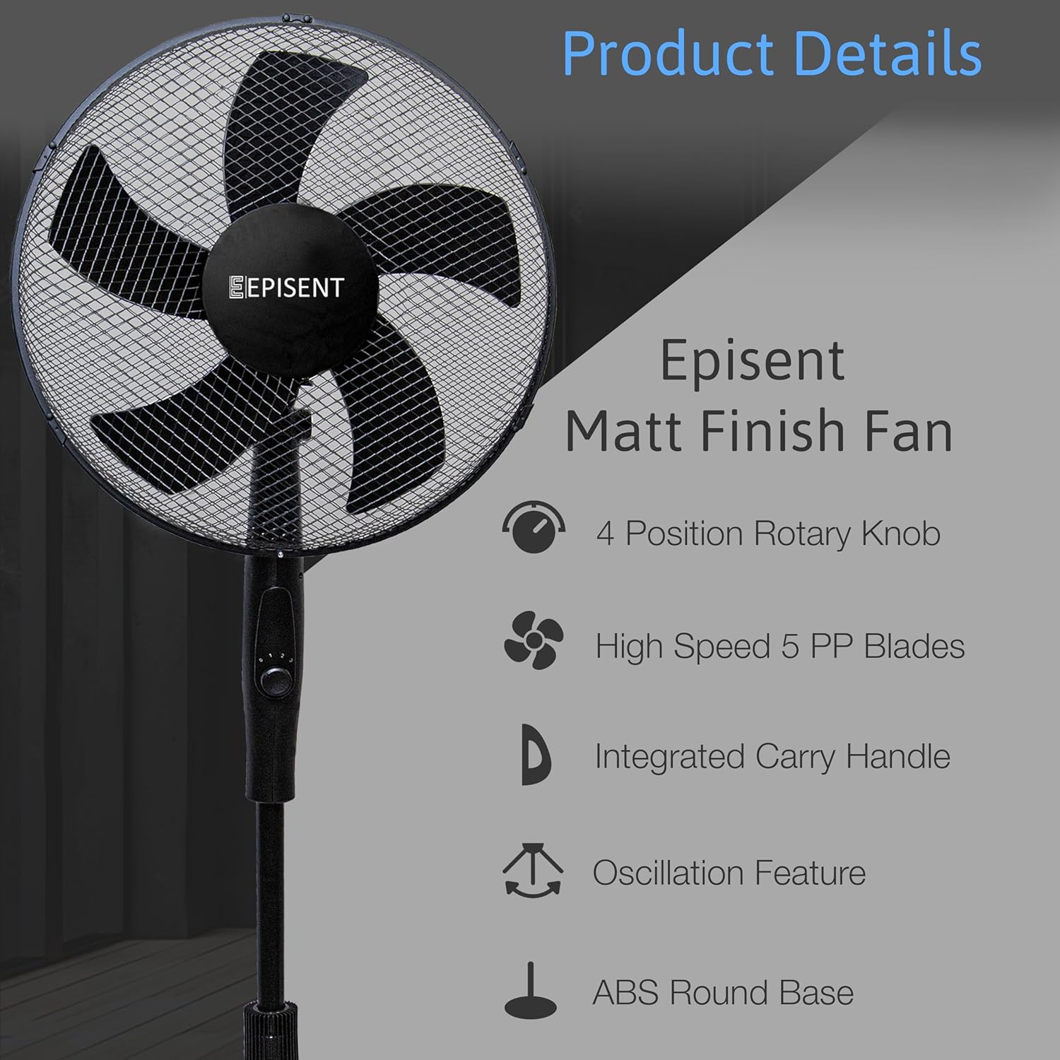 EPISENT 16'' Pedestal Matt Fan | Adjustable Height 140cm | Oscillating & Manual Head Pivot | Rotary Knob Speed Control | Standing Fan for Home & Office
