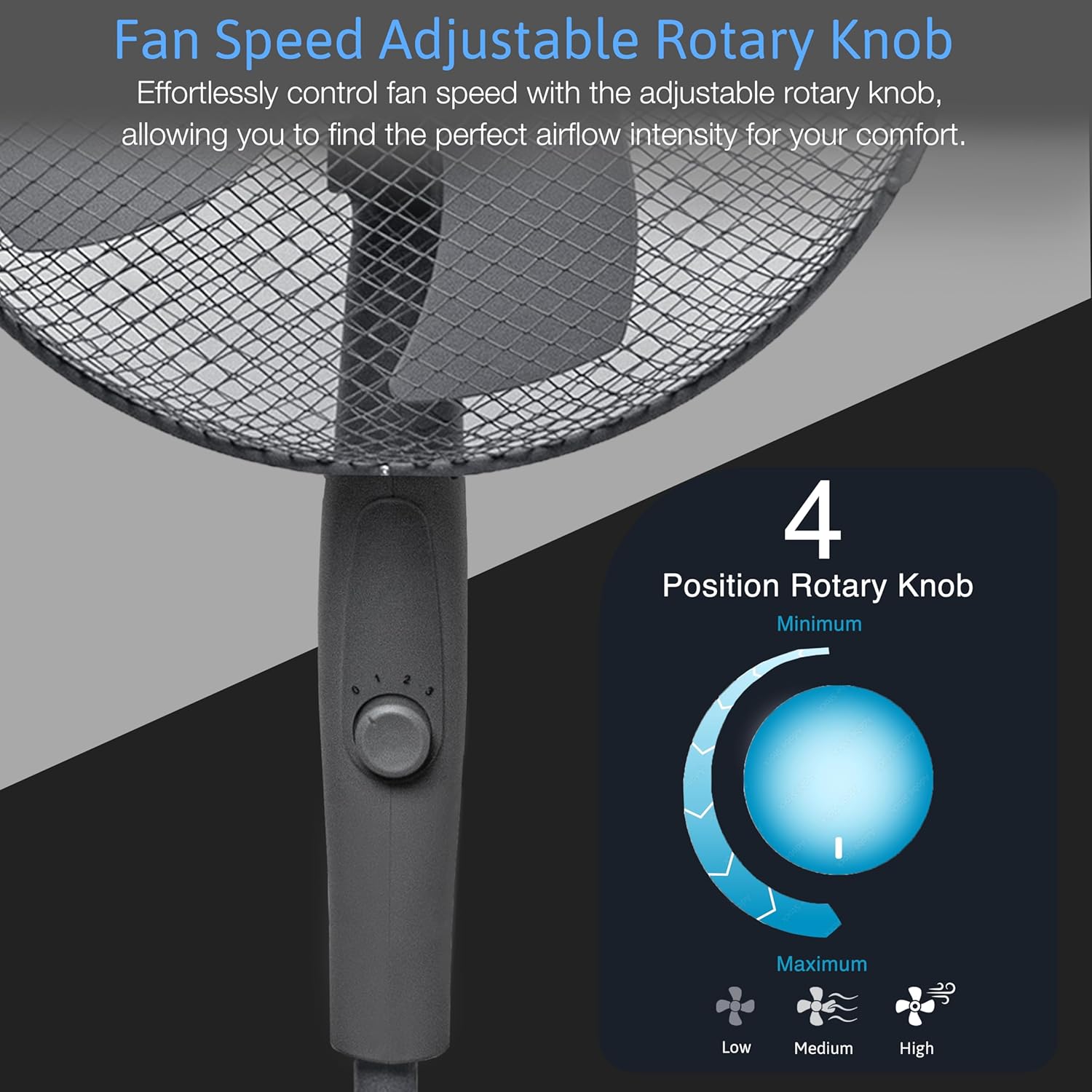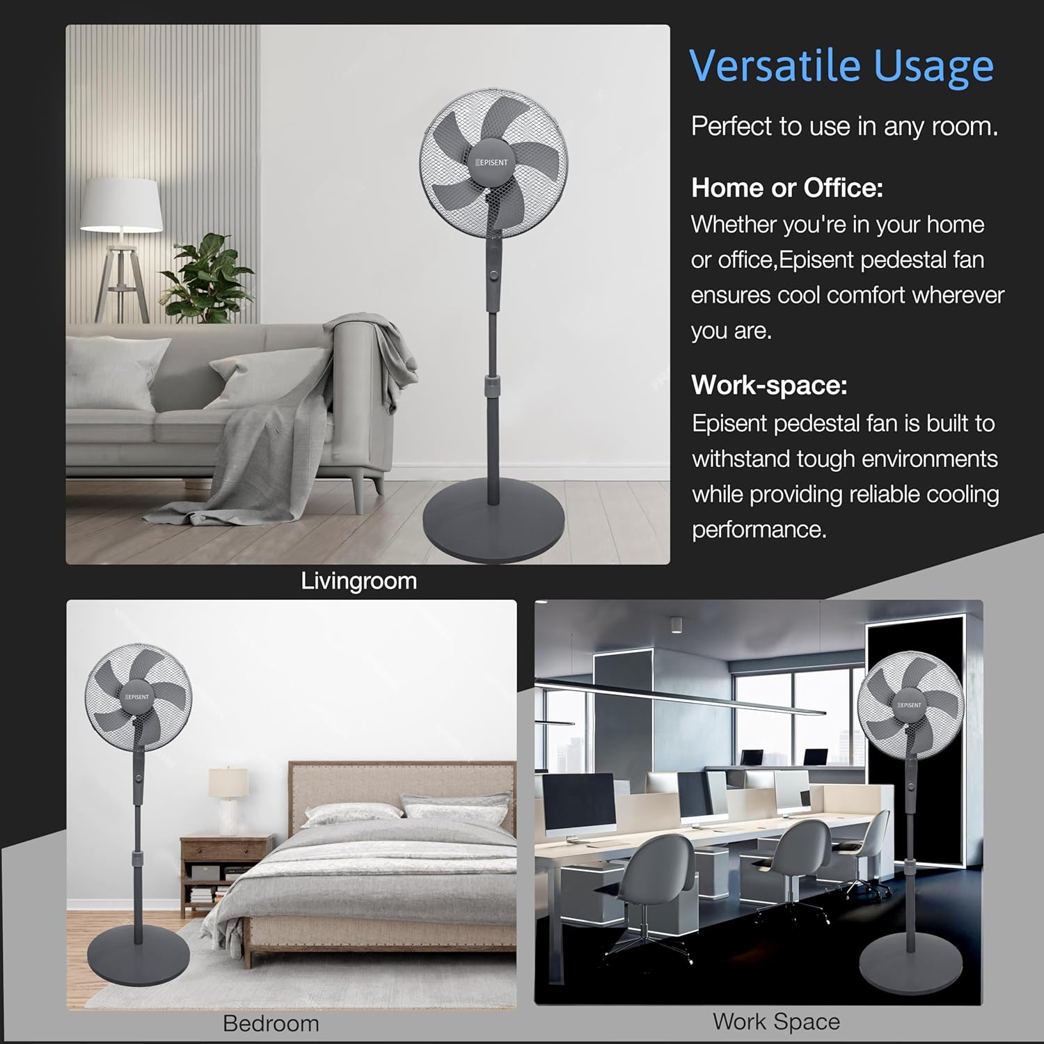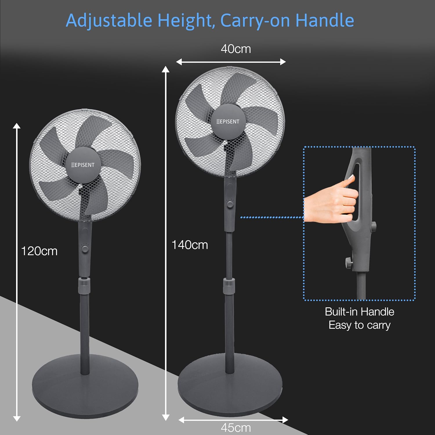 EPISENT 16'' Pedestal Matt Fan | Adjustable Height 140cm | Oscillating & Manual Head Pivot | Rotary Knob Speed Control | Standing Fan for Home & Office