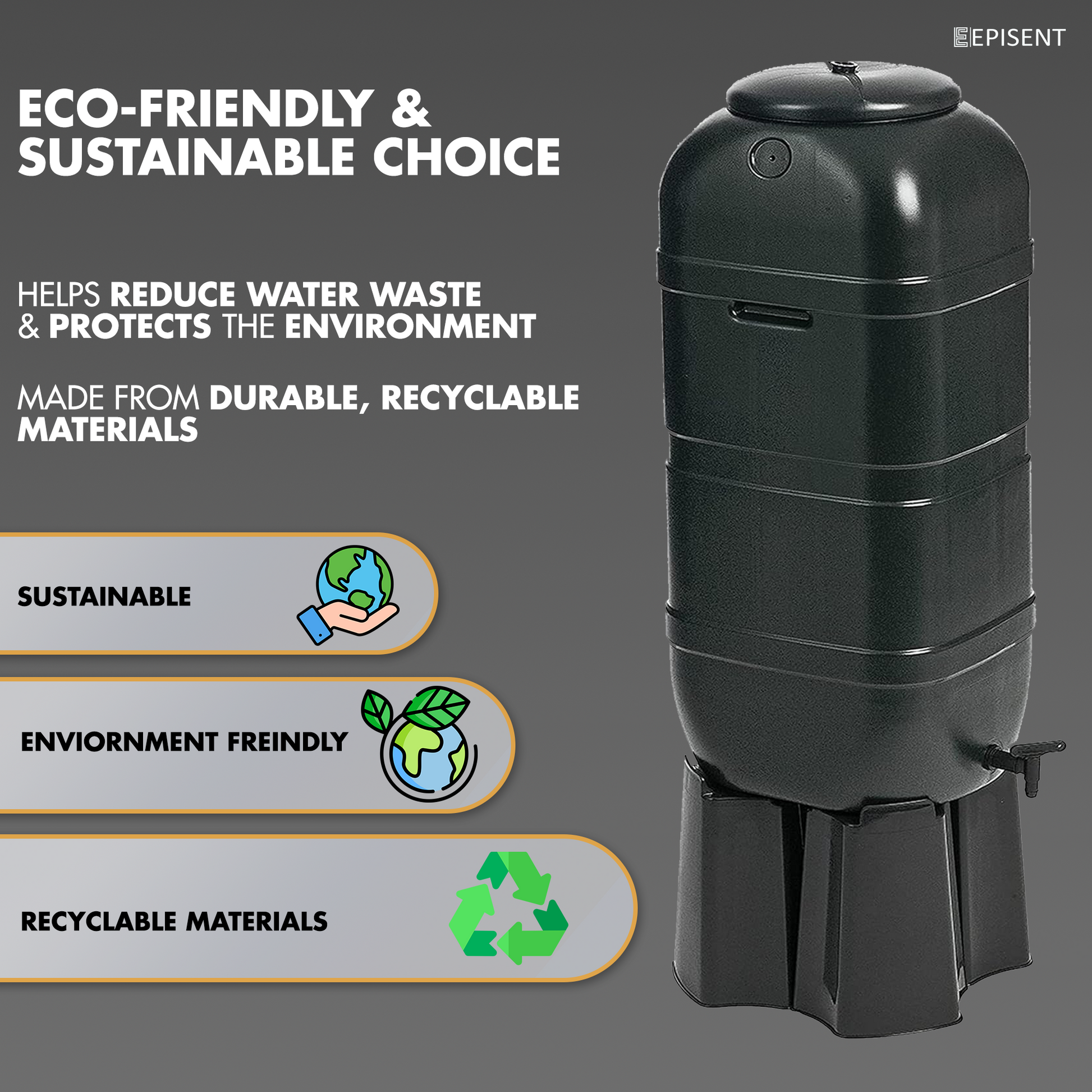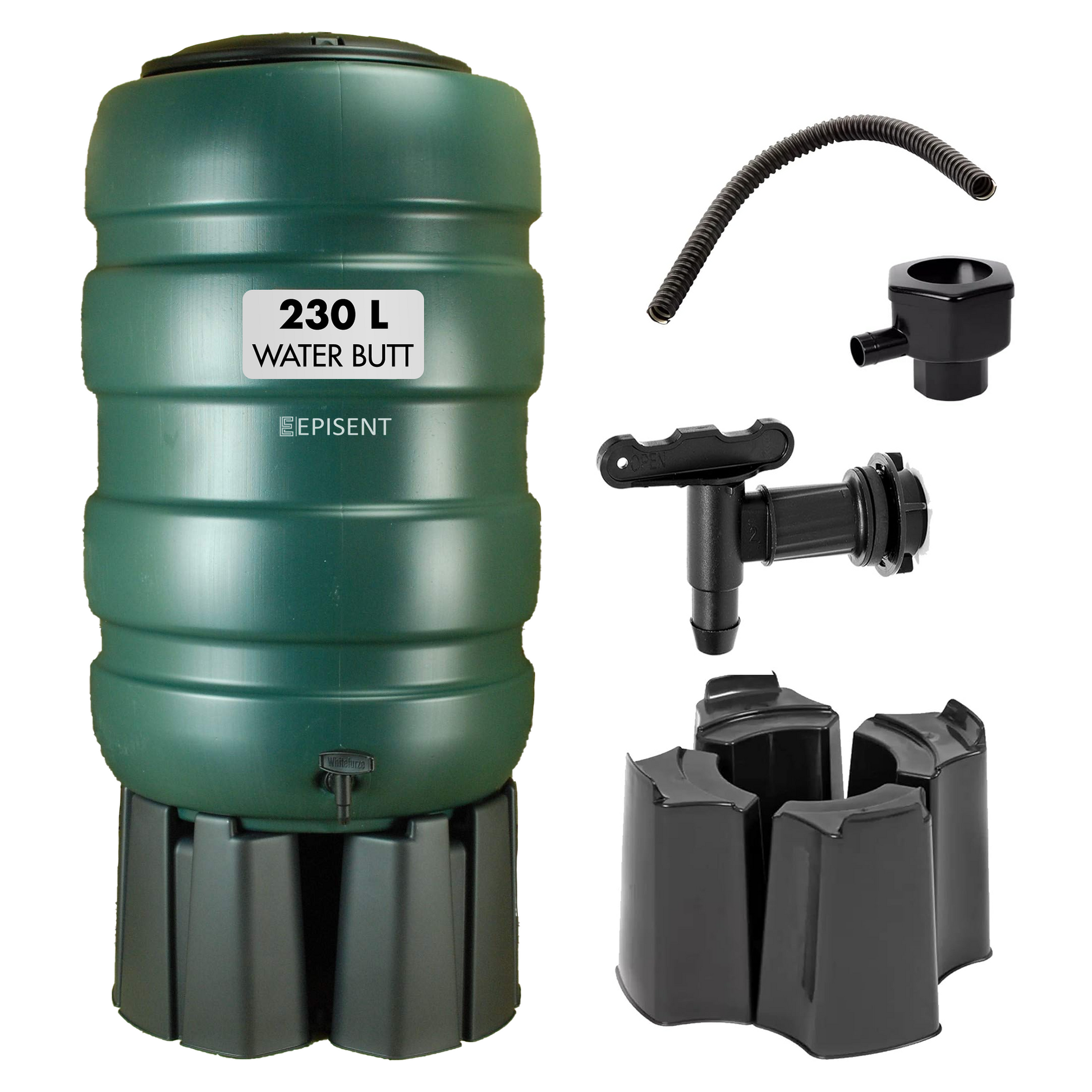 EPISENT 230L& 100L Water Butt - Garden Water Storage - Plastic Water Butt Set Including Tap, Stand, Lockable Lid, & Filler Kit - Ideal for Any Garden - Eco Friendly Water Storage Unit