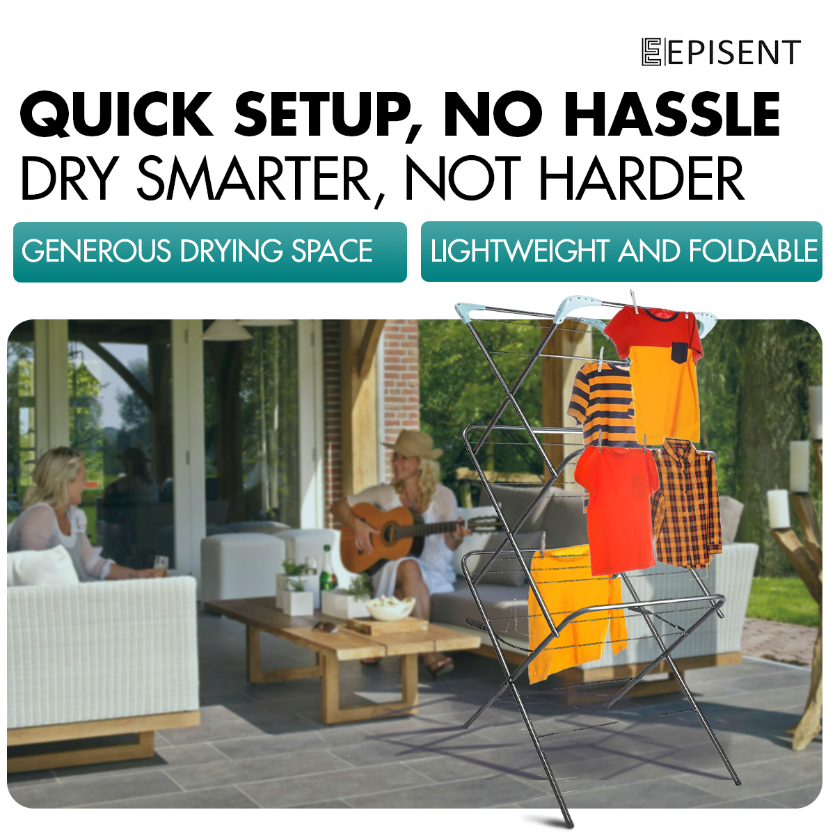 Episent 3-Tier Foldable Clothes Airer Large-Capacity Drying Rack for Indoor & Outdoor Use