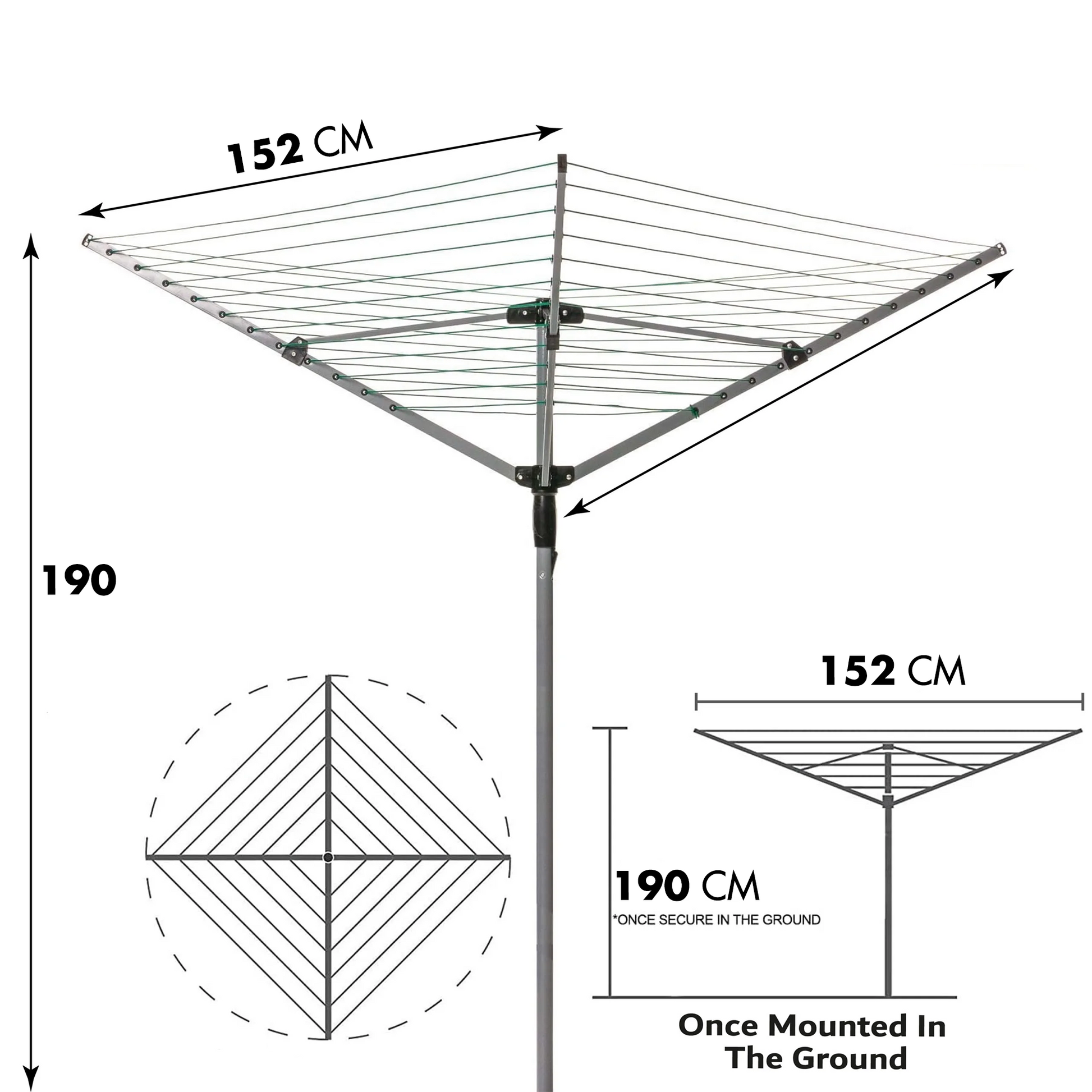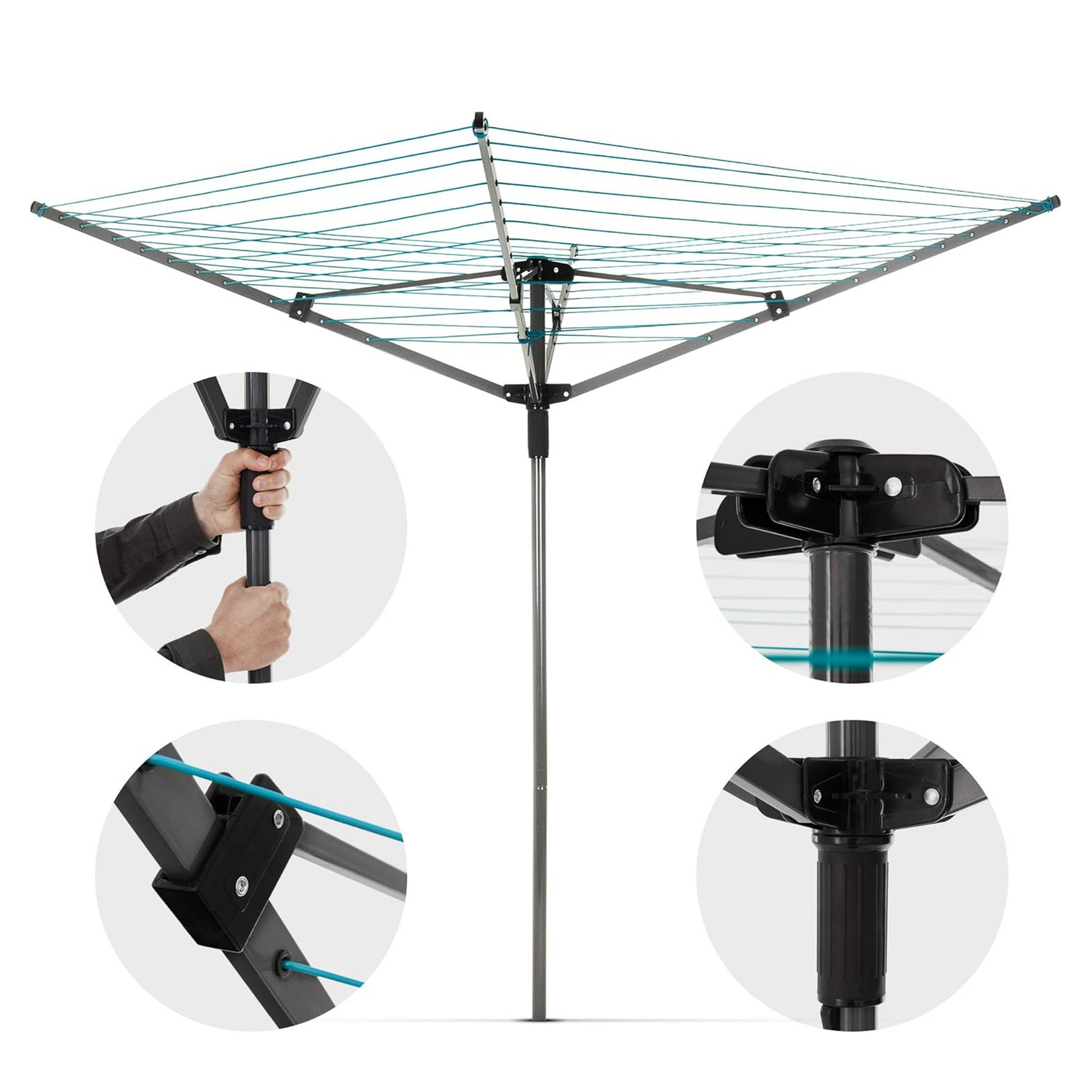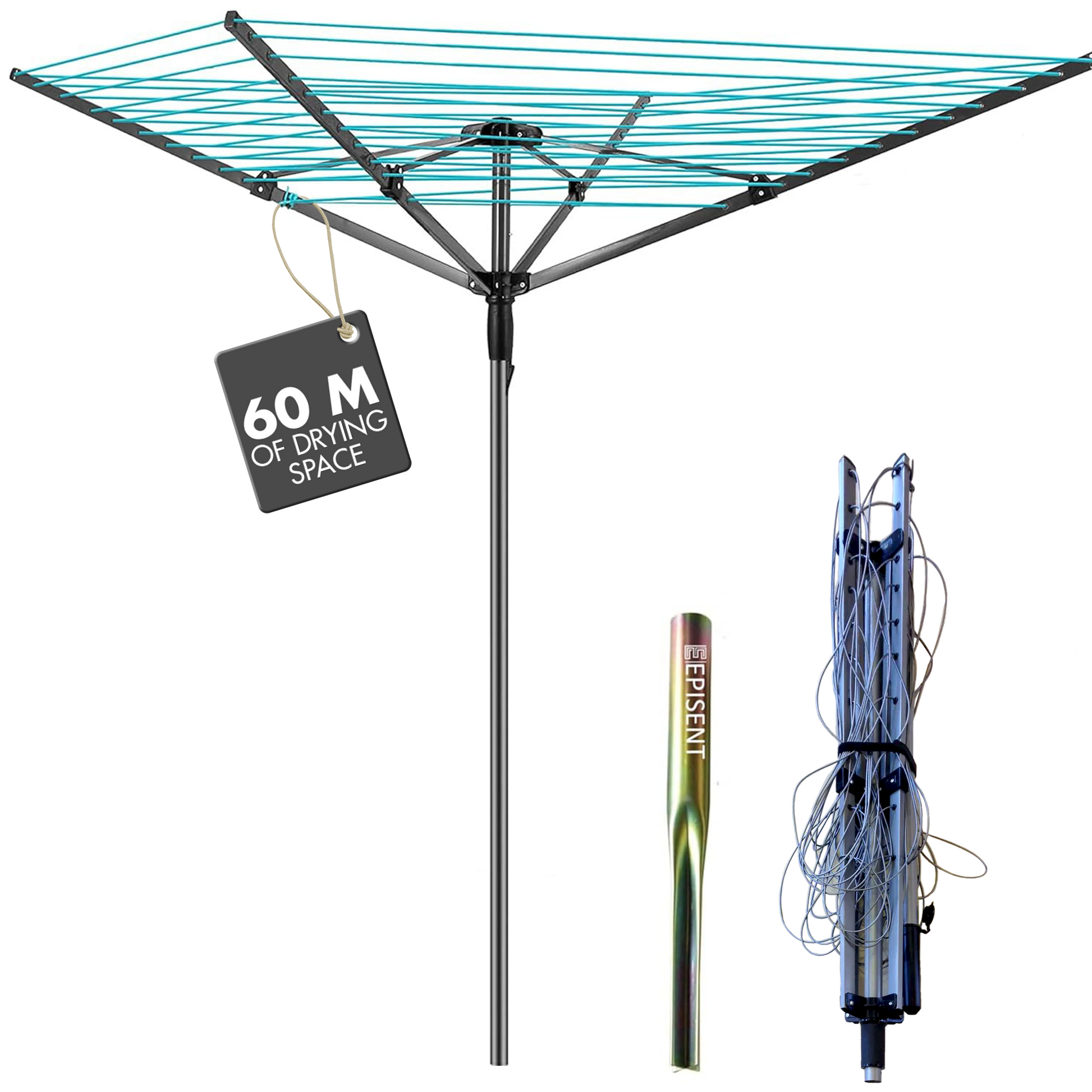 EPISENT 60m Rotary Airer with Ground Metal Spike | Heavy Duty 4 Arm Outdoor Clothes Dryer | UV-Resistant, Non-Slip Lining | Smooth Turns, Umbrella System