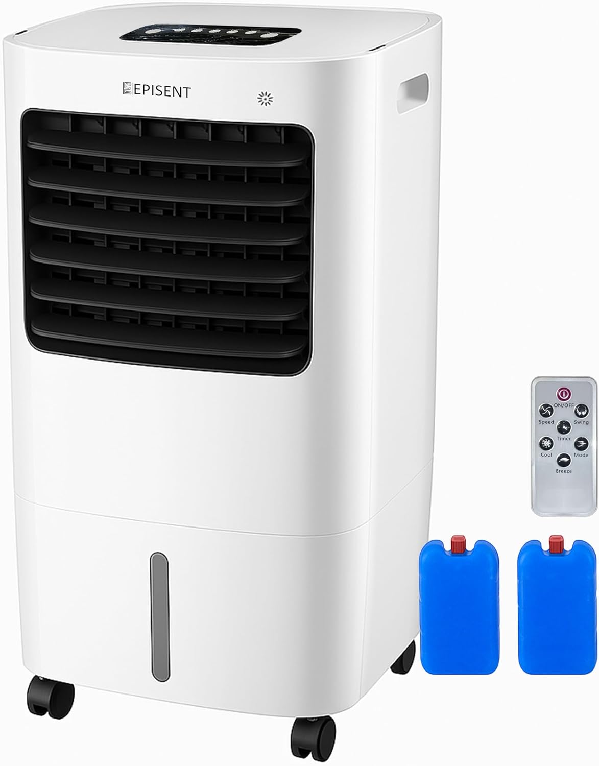 EPISENT Air Cooler – Portable Evaporative Air Cooling Fan with 15L Tank, Remote, Timer with FREE Ice Packs – Quiet AC Cooler Unit for Bedroom, Home, Office – Compact Aircon Tower & Humidifier Fan