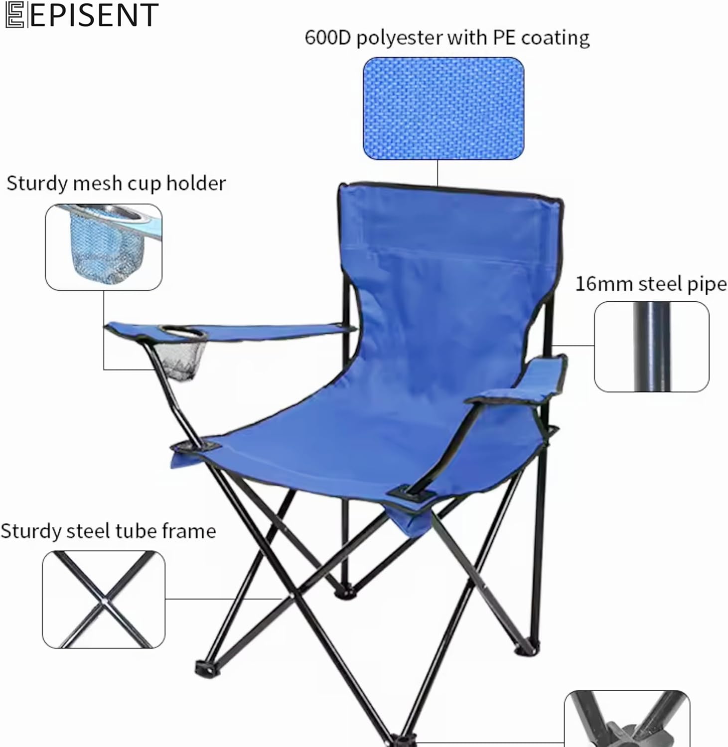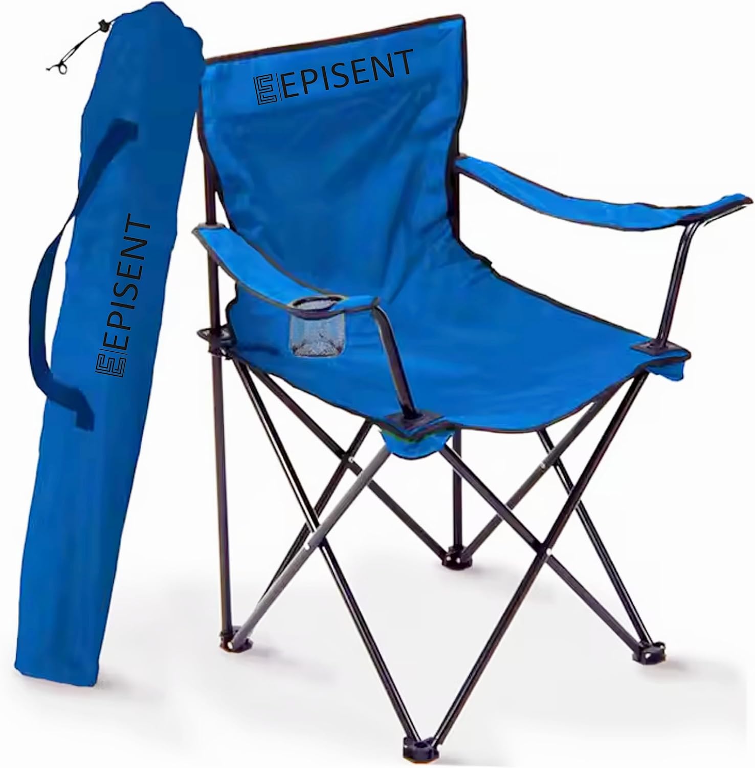 EPISENT Camping Chair | Lightweight & Portable Fishing Chair with Carrying Bag | Armrests & Cup Holder | Perfect for Caravan Trips, BBQs, Garden, Beach, Picnic, and Traveling (Blue)