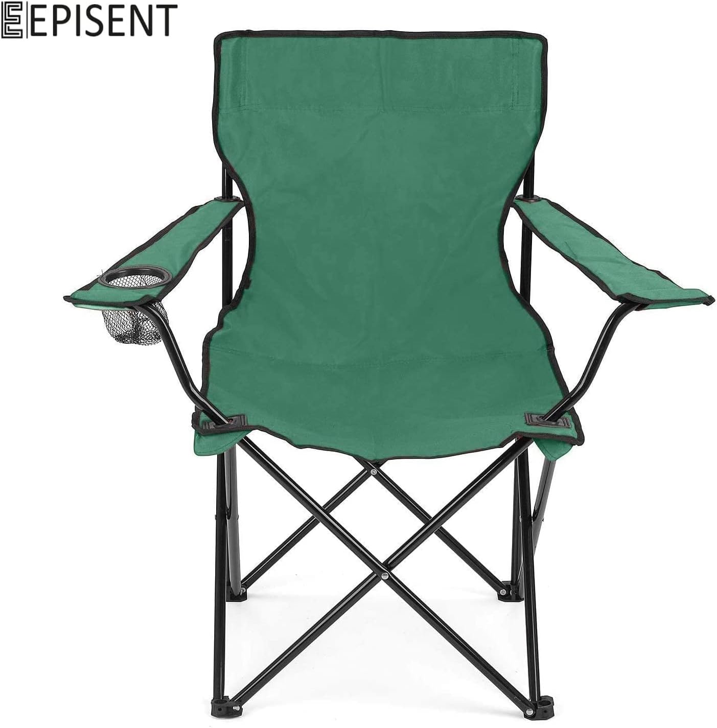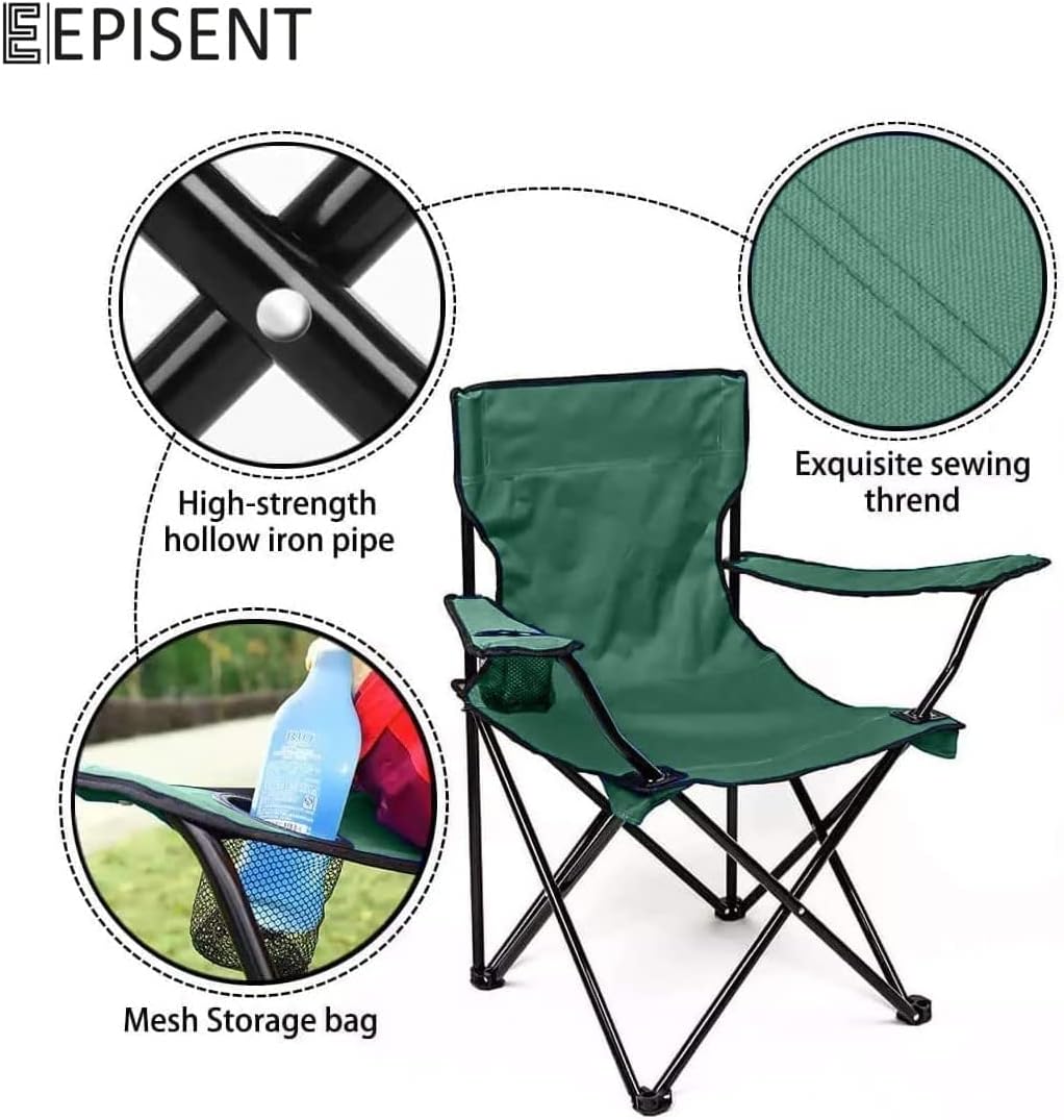 Episent Camping Chair | Lightweight & Portable Fishing Chair with Carrying Bag | Armrests & Cup Holder | Perfect for Caravan Trips, BBQs, Garden, Beach, Picnic, and Traveling (Green)