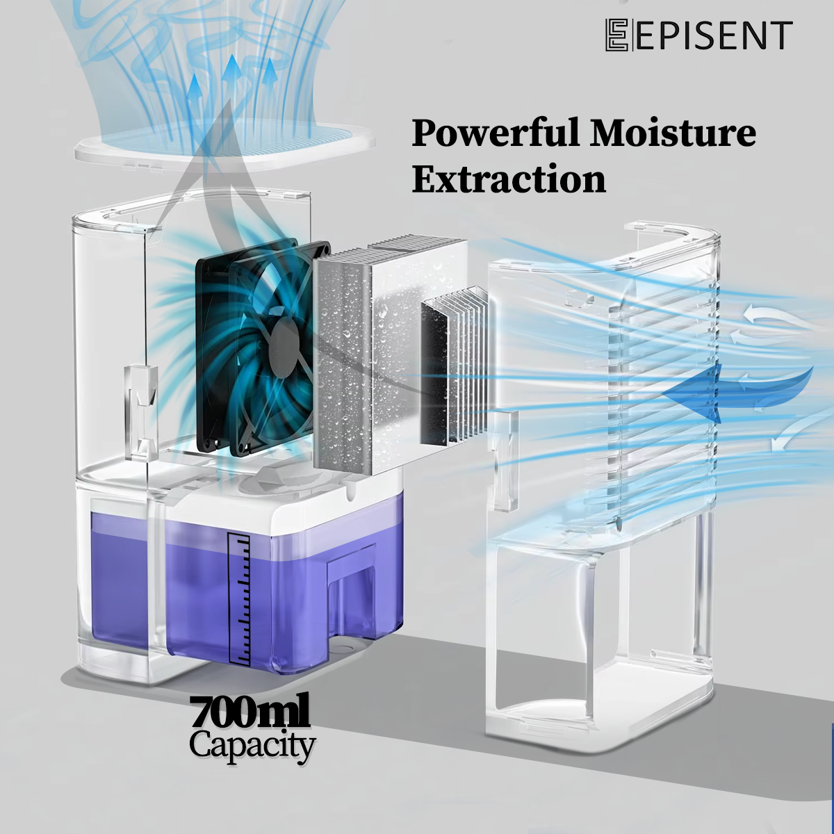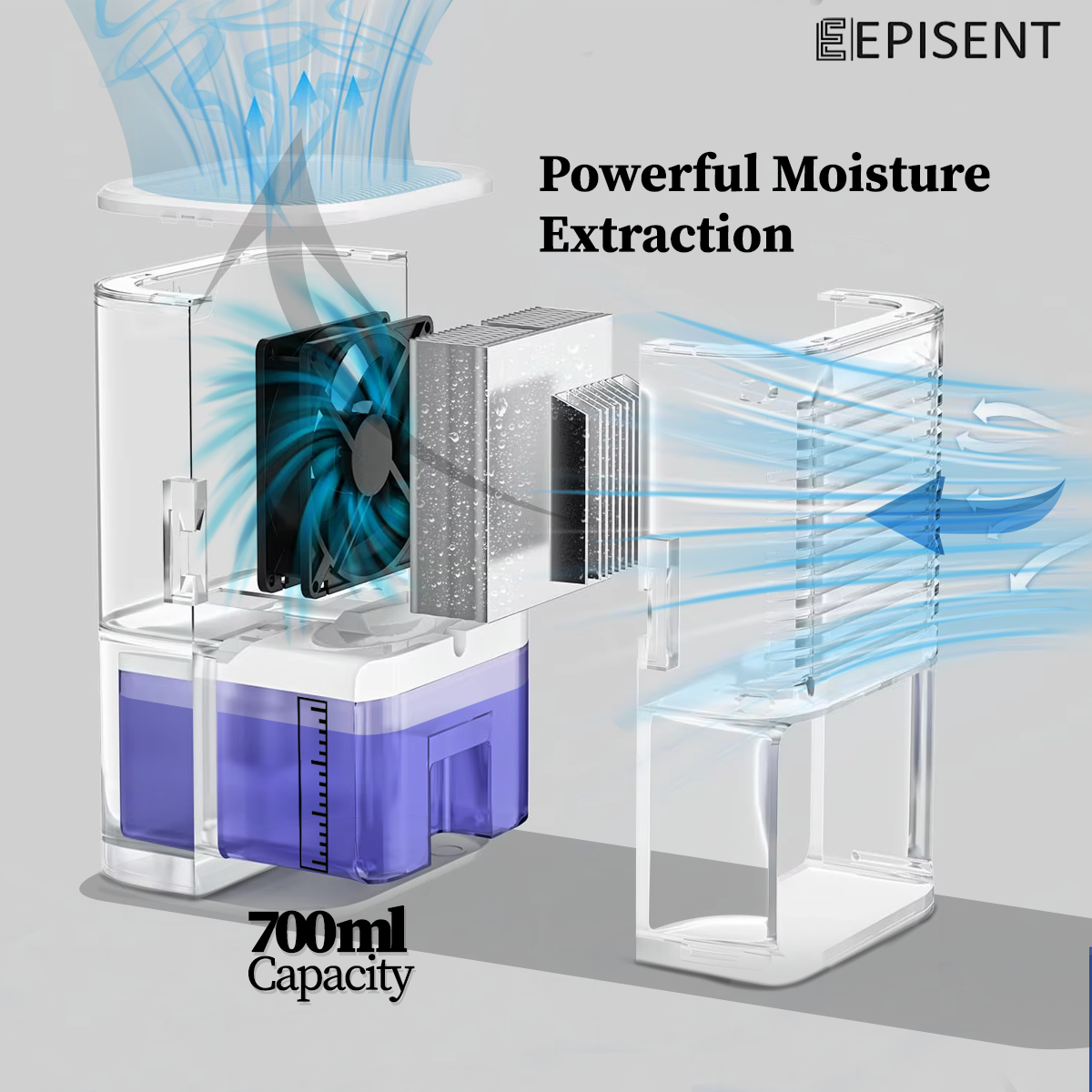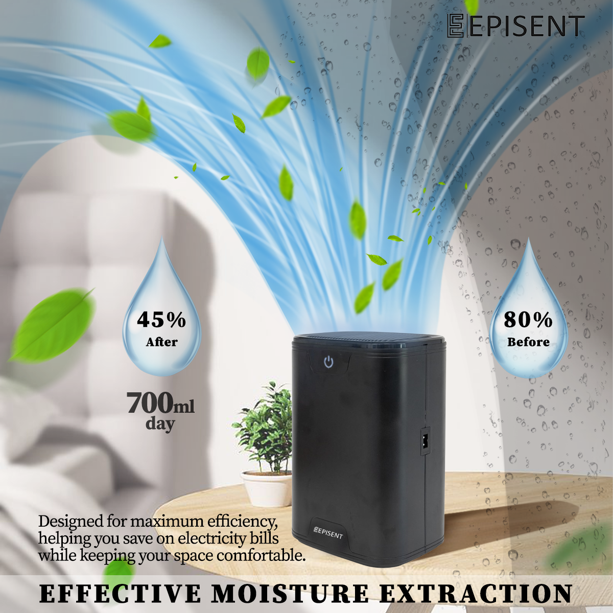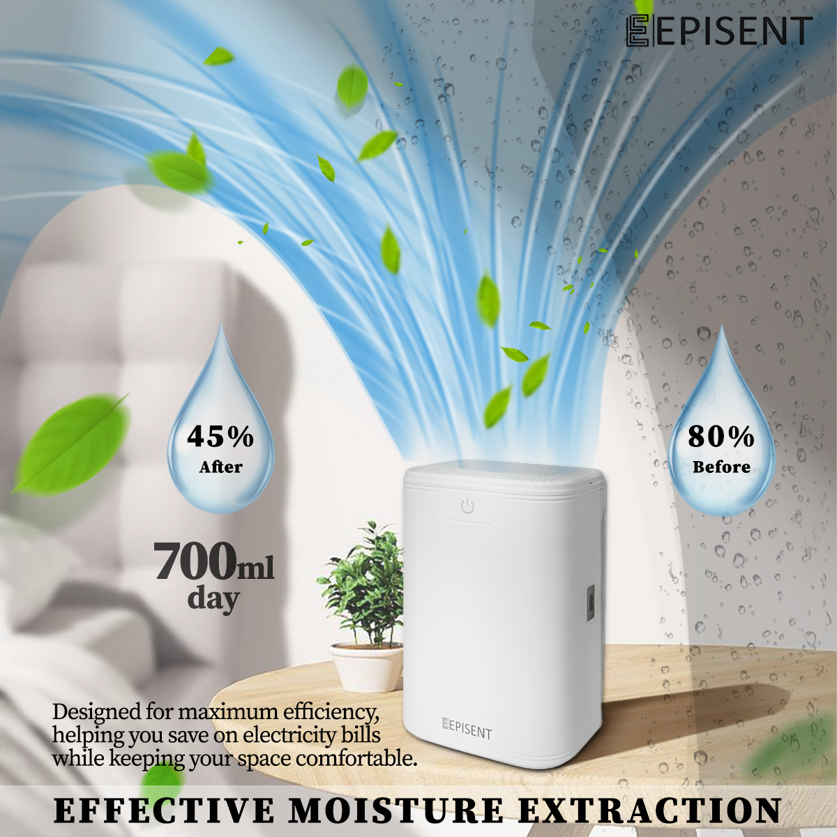 EPISENT Electric Dehumidifier 700ml - Home Moisture Control, Compact Design, Auto Shut Off, Quiet Operation, Ideal for Bedrooms, Bathrooms & More