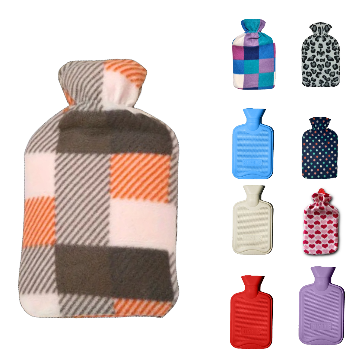 EPISENT Hot Water Bottle 2L Leak-Proof with Super Soft Fleece Cover - for Pain Relief, Cramps, & Cozy Nights - Comfort Hot Water Bag for Your Body & Bed Warmers - Dark Blue with Polka Dots