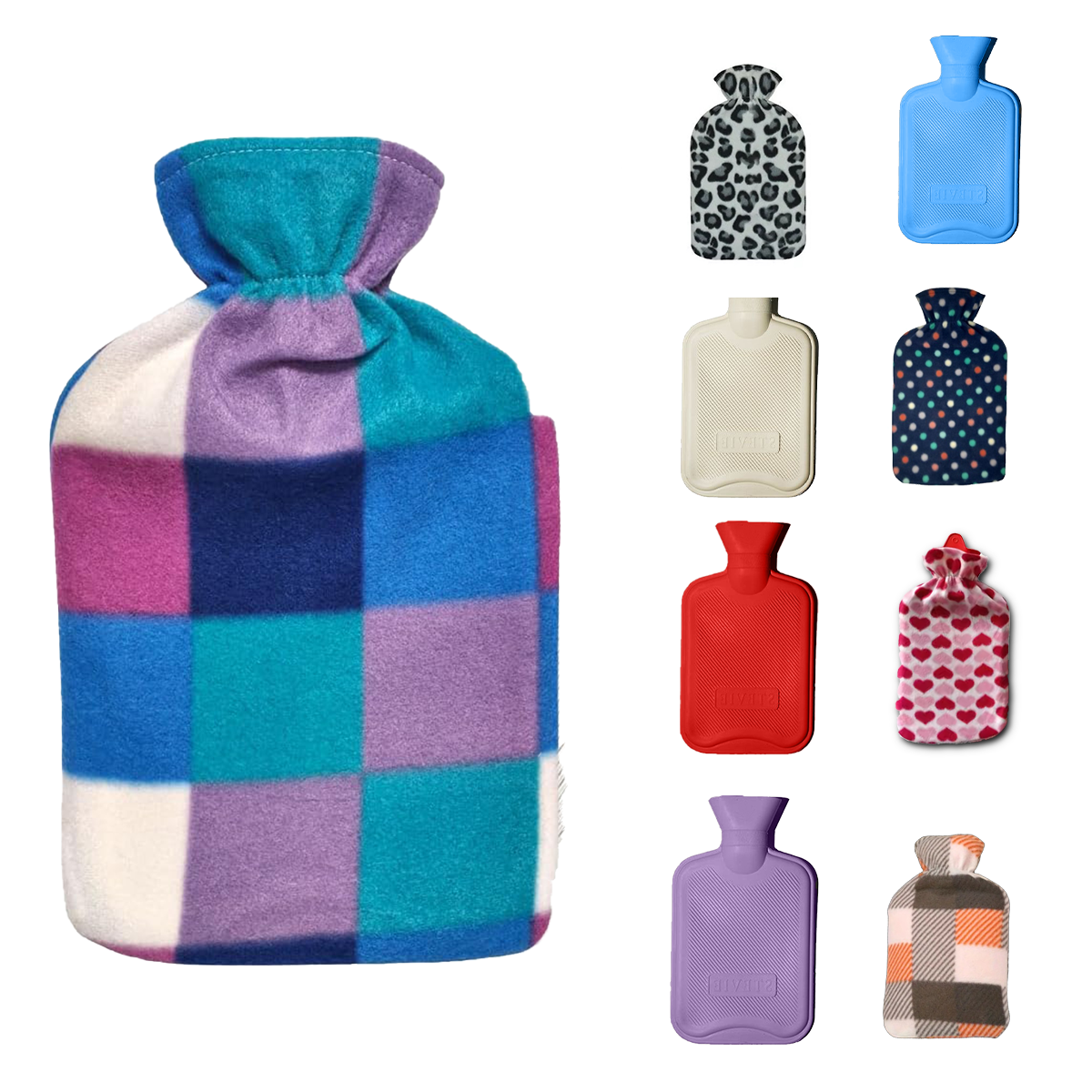 EPISENT Hot Water Bottle 2L Leak-Proof with Super Soft Fleece Cover - for Pain Relief, Cramps, & Cozy Nights - Comfort Hot Water Bag for Your Body & Bed Warmers - White with Blue Checks Cover