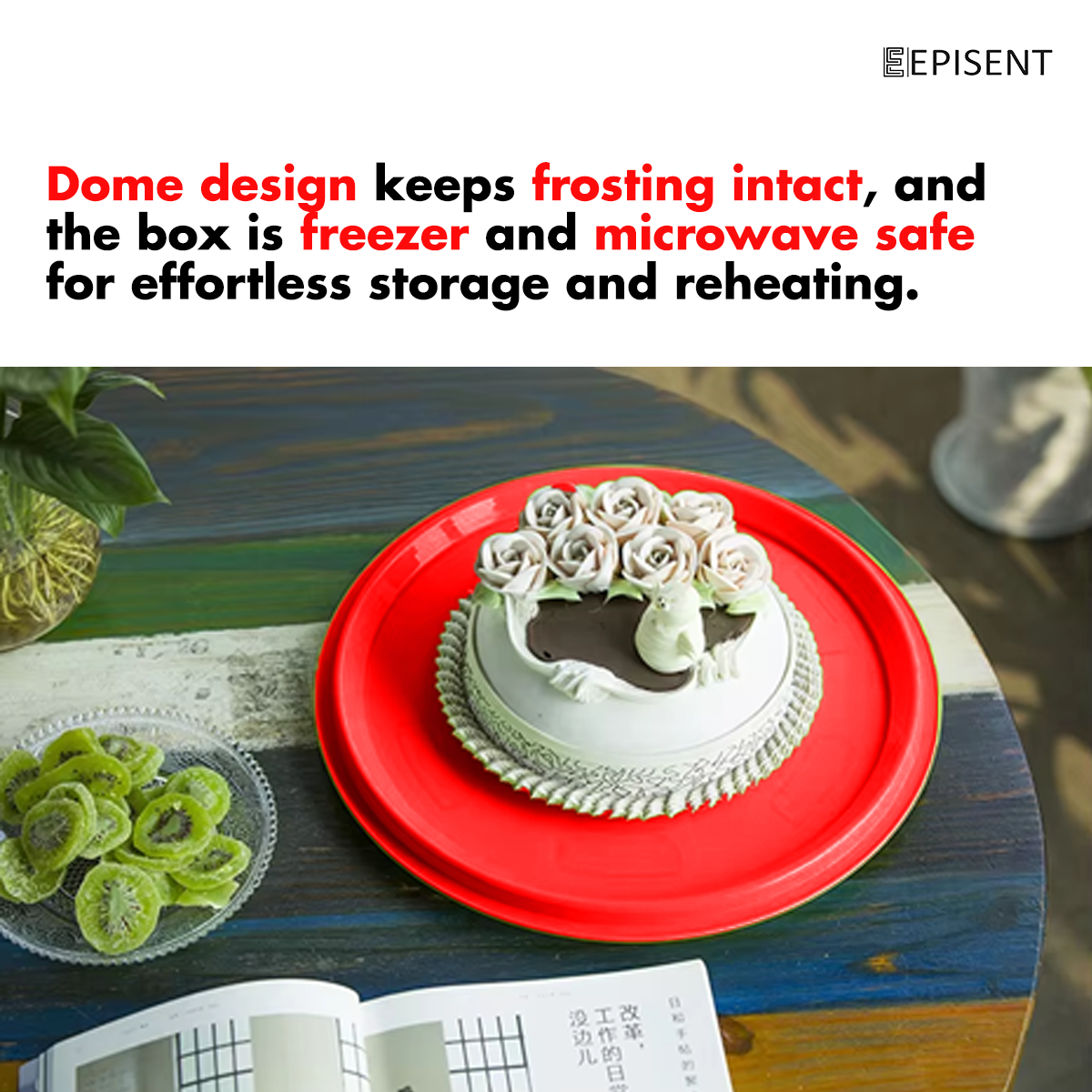 EPISENT Large Cake Storage Box – Lockable Lid Carry Handle & Transparent Dome – 11-Inch Cake Carrier for Safe Transport