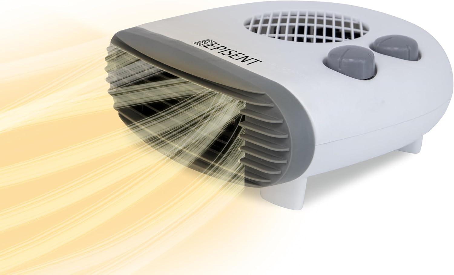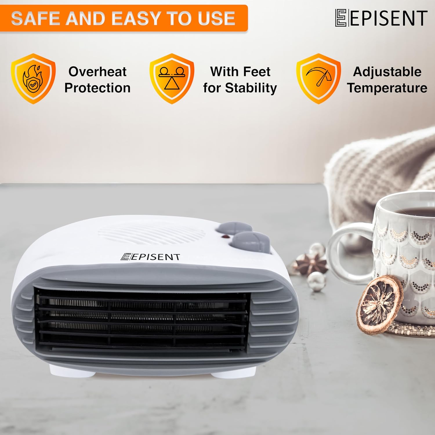 Episent Portable Fan Heater - Heat Settings & Adjustable Thermostat - 2 Heat Settings 1000/2000W - Cool Air Function & Thermal Cut-Out Device - Perfect for Home and Office (FLAT BED HEATER)