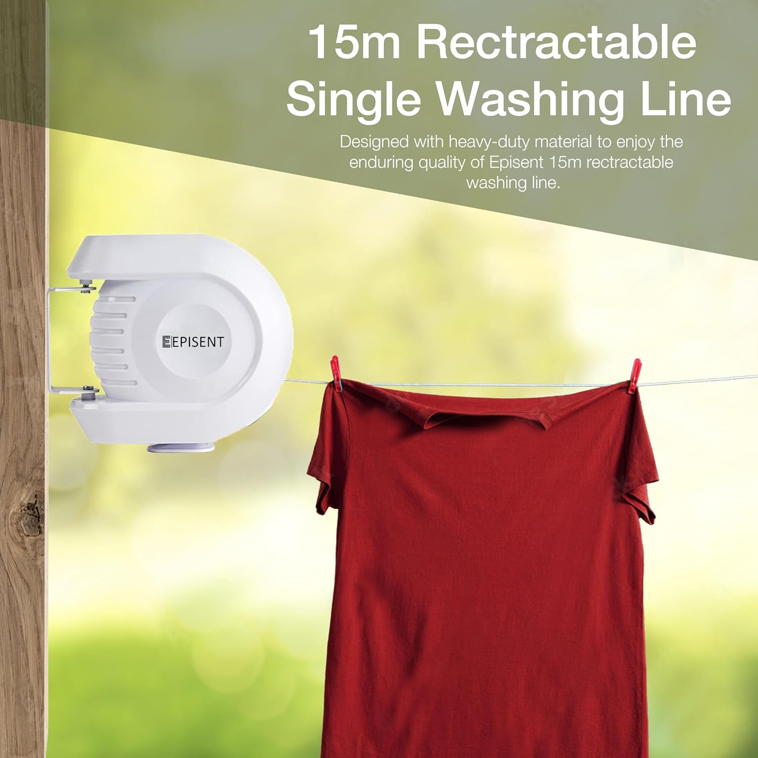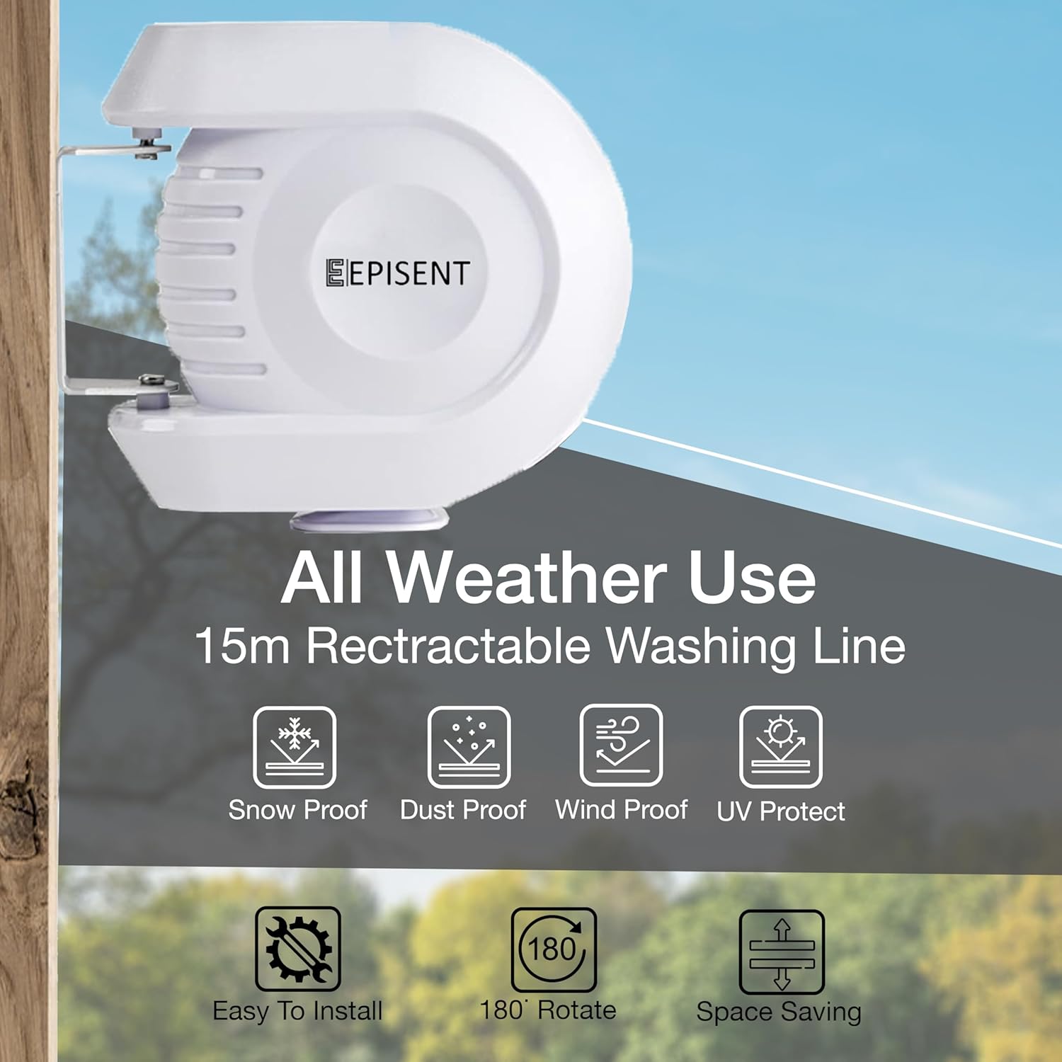 EPISENT Retractable Washing Line – Twin 15m Extendable Clothesline (30m Total) | High-Tensile UV-Resistant Weatherproof Laundry Line for Indoor & Outdoor Use