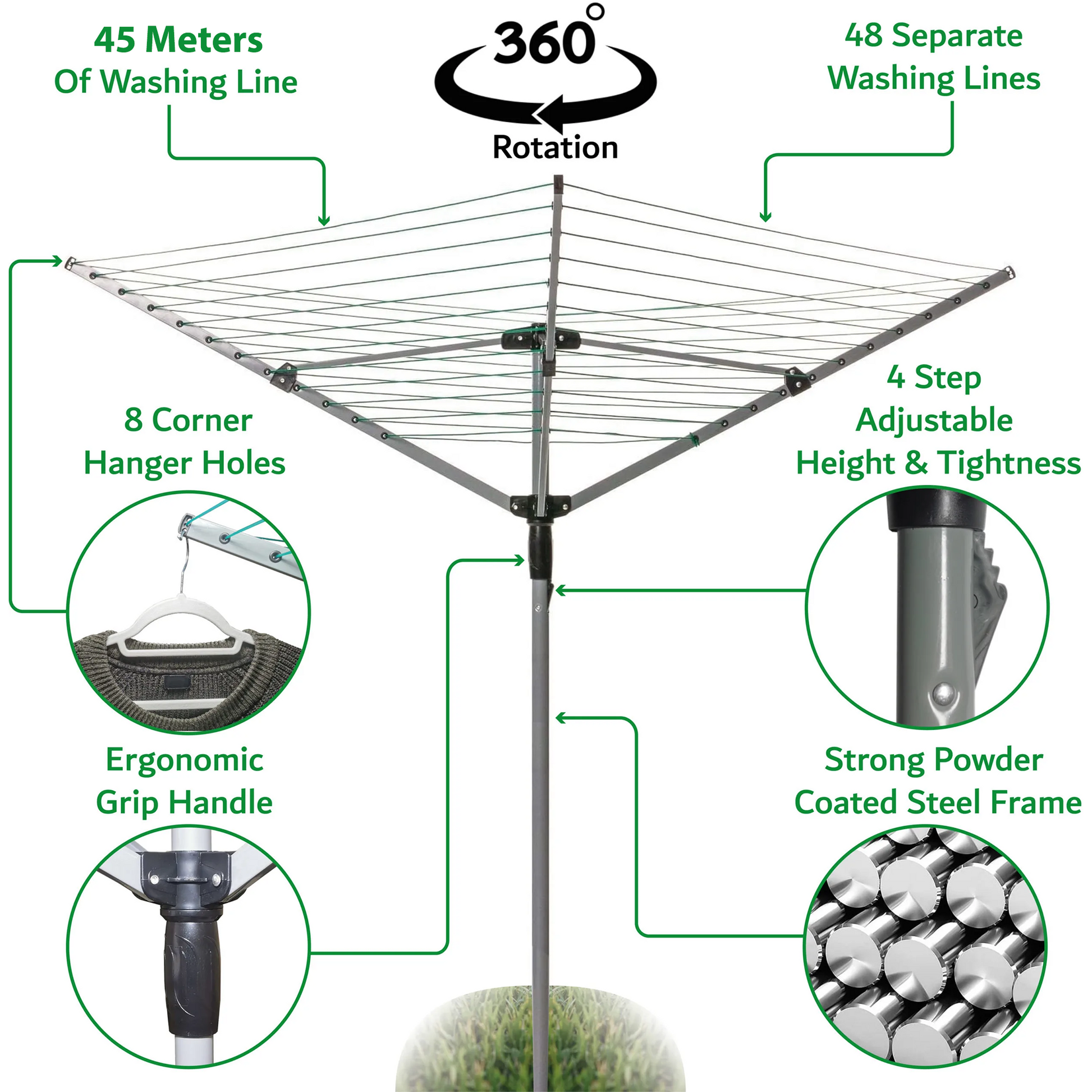 • Fits 32mm Poles: Ideal for rotary airers parasols umbrellas & flagpoles