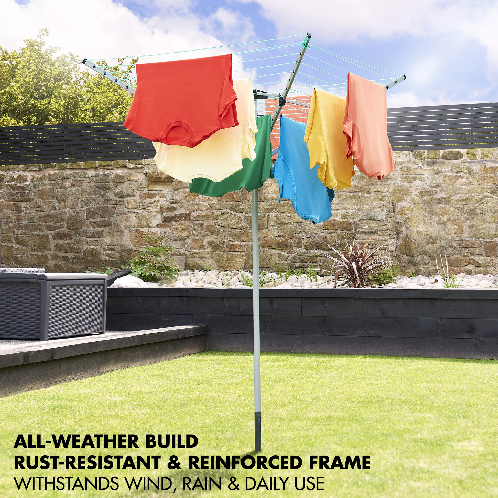 With cross-shaped stabilising ends it remains firmly in position—even under windy or unstable ground conditions. It’s a reliable choice for both seasonal and permanent outdoor setups.