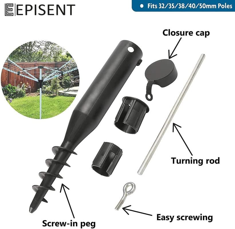 EPISENT Rotary Washing Line Spike | Plastic Screw Spike in Ground - Washing Line Parasol Holder Soil Stand | No Need for Concrete - Parasol, Flags, Activity Poles, Bird Feeders, and Rotary Airers