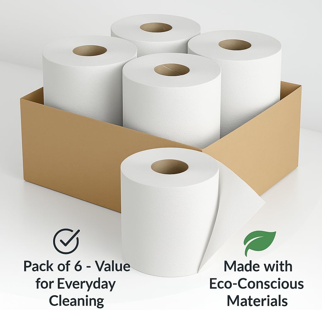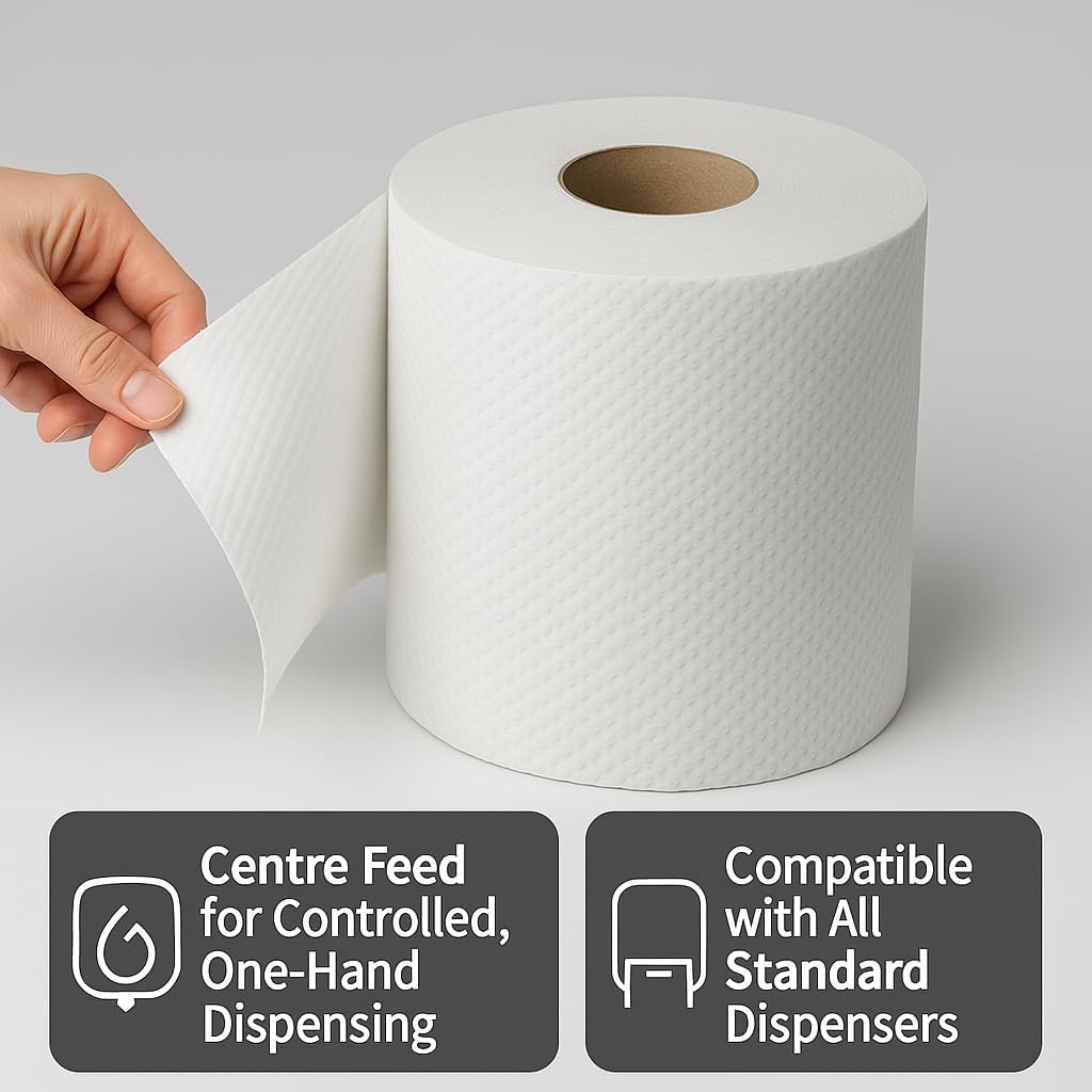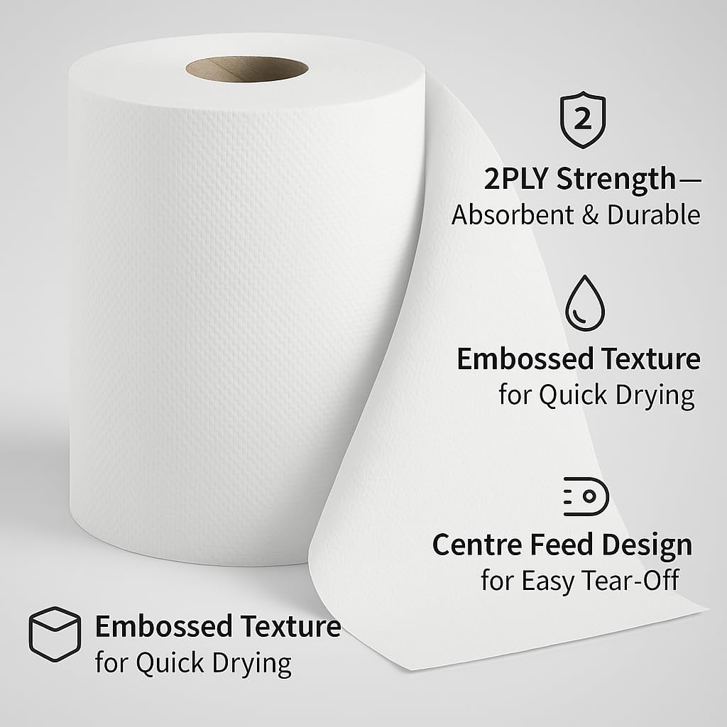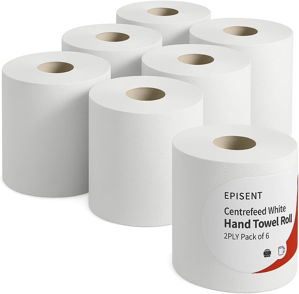 EPISENT White Rolls| 2 PLY Pack of 6 Rolls| Embossed Centre Feed| Kitchen Towel| White ROLL